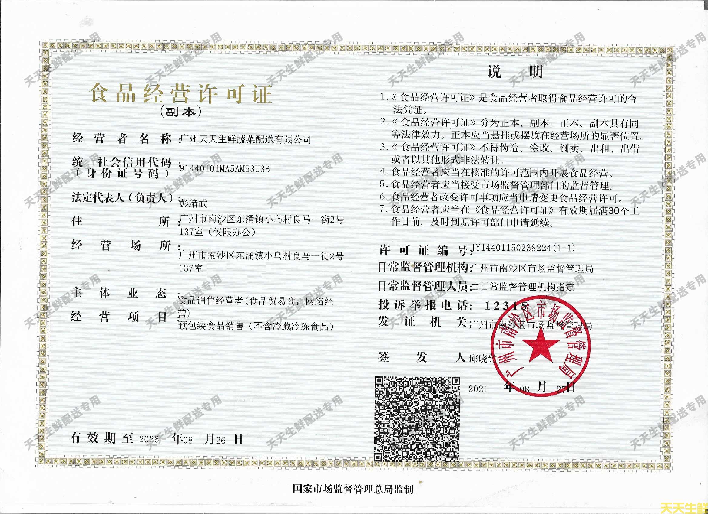 广州蔬菜配送食品经营许可证